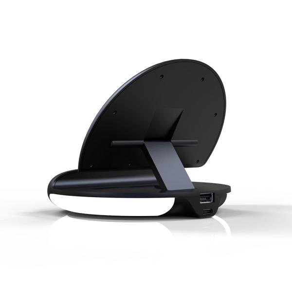 2) convenience and multi-function. The wireless charger is foldable so you can charge it in different places : lying down, sideways or vertically. It can be used as a phone booth to check messages, watch video and meet people. Compact design, suitable for any home, office or hotel etc. Also, an alarm clock is an extra function that shows the time to wake you up every day